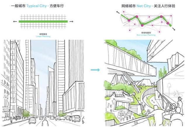 网络城市的理念由NBBJ在参考腾讯提出的WeCity的基础上延伸创作。