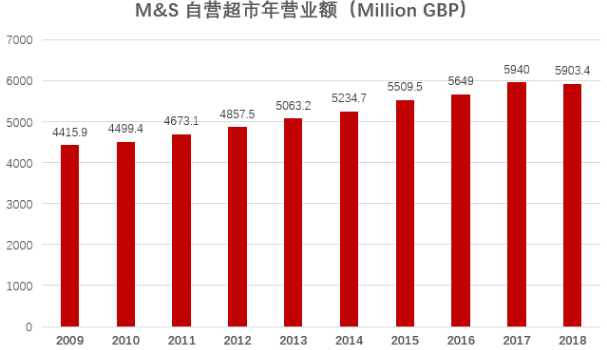 玛莎百货自营超市年营业额近10年来一直呈上涨趋势,是玛莎百货在低谷期唯一持续增长的品类。