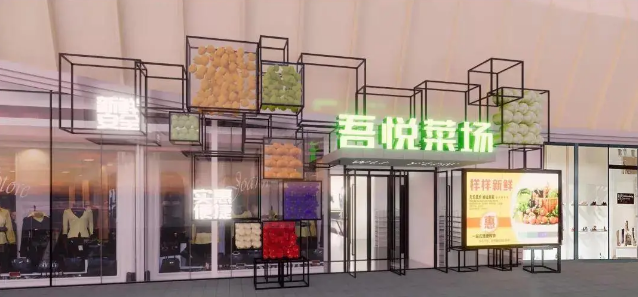 国内,“吾悦超级菜场”是为数不多的购物中心背景做自营超市的案例。