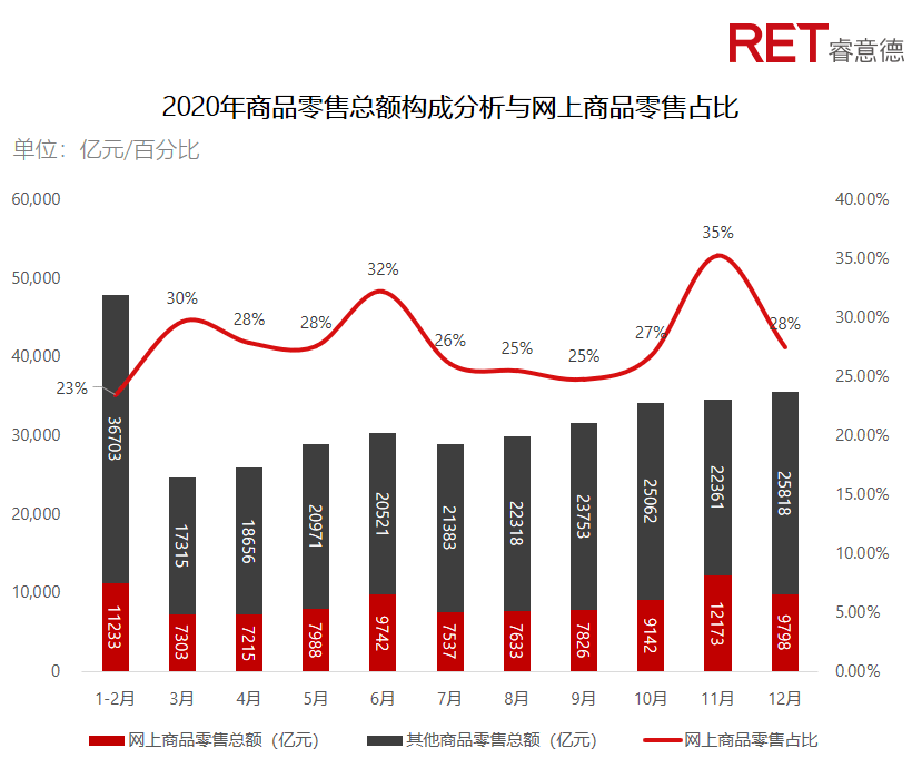 2020年中国商品零售额同比下降2.3%,实物网上商品零售总额逆势增长14.8%,网上购物成为疫情下消费者最主要的消费手段之一,购物中心也纷纷通过线上平台、微信社区、自媒体、直播间等多种方式触达消费者。