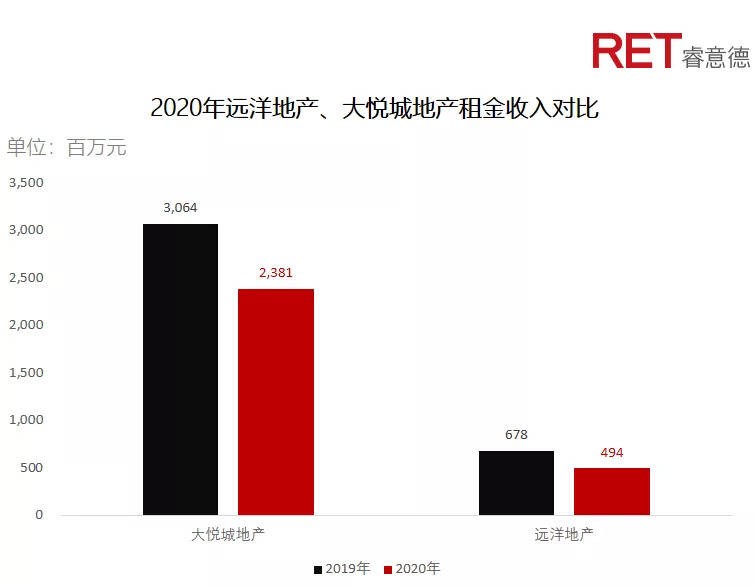 本年度,租金收益大体呈两极分化的态势。万达商管的租金收益领衔全场,达359亿,同比增长2.1%;受规模化拓展加持,新城控股租金收益增长速度最快,涨幅达到34%;租金收益降幅较多的是远洋地产和大悦城地产,降幅达27.2%、22.3%,主要原因是受到新冠疫情的影响。