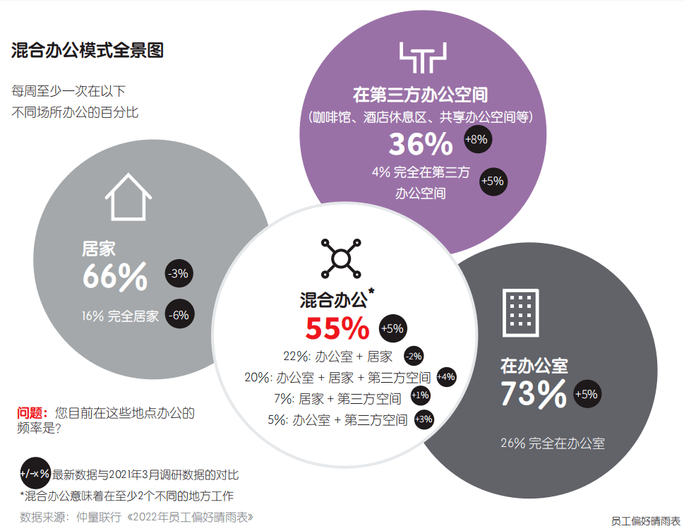显而易见的是,从目前的实践情况以及短期预期来看,混合办公模式已成为公司以及员工普遍接受且受欢迎的办公模式。