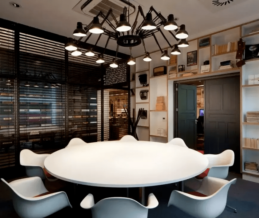 这间酒店的大堂没有清晰的功能分界,这正是酒店想要呈现的效果——在公共区域做最大程度通透的同时,刻意的模糊工作、学习、生活这三者的界限,整个场景构建成类似于家庭起居室的感觉。而在会议室,这里的有格调、充满创意的氛围足够让你脑力激荡。