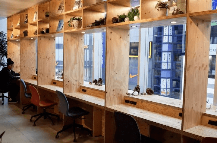 当然,在这里,24小时的高速网络、打印机等办公必需品也是标配,人们可以随时拿着笔记本在书架下处理工作。