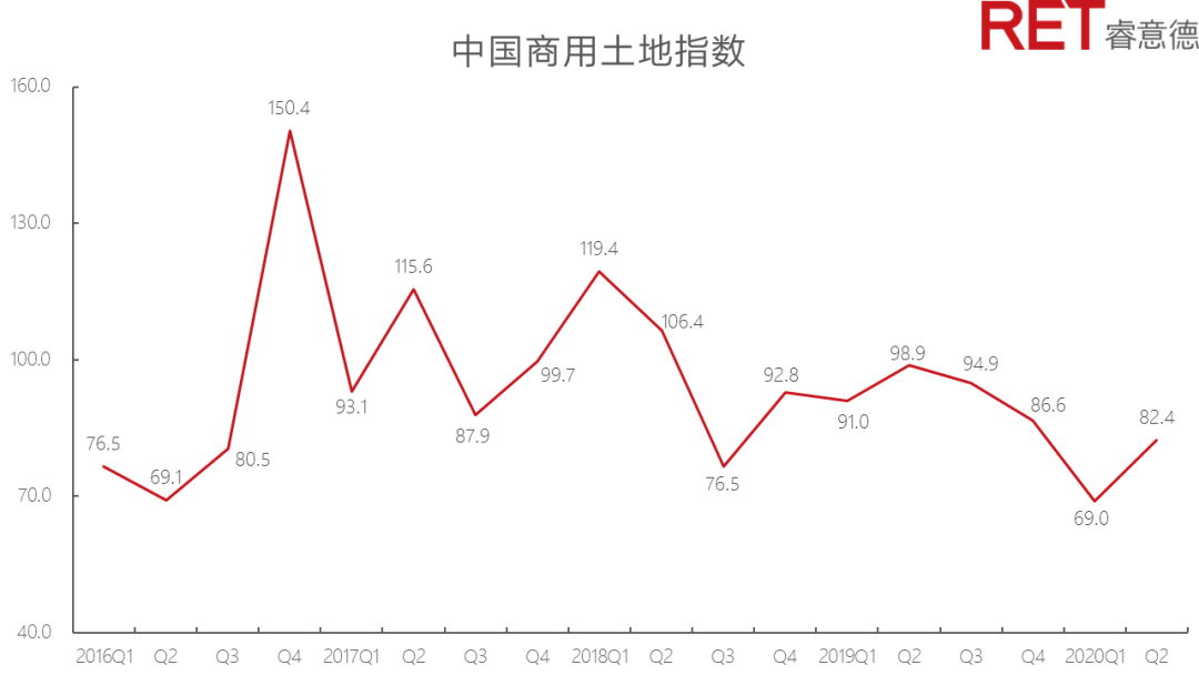 *中国商用土地指数涵盖商用土地市场的多项交易指标,综合反映开发商对商业地产开发的投资积极性。中国商用土地指数上涨说明开发商对商用土地市场的投资热情上升。