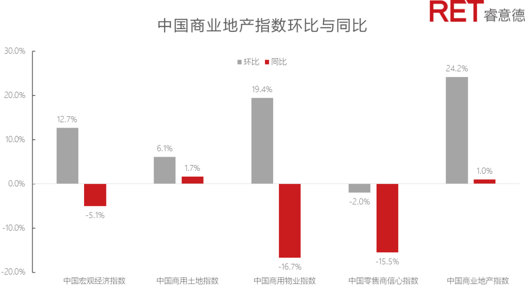 *中国宏观经济指数是根据宏观经济数据计算所得,涵盖与商业地产宏观发展环境密切相关的主要经济指标,综合反映经济走势。中国宏观经济指数上涨说明整体宏观环境对商业地产发展更加有利。