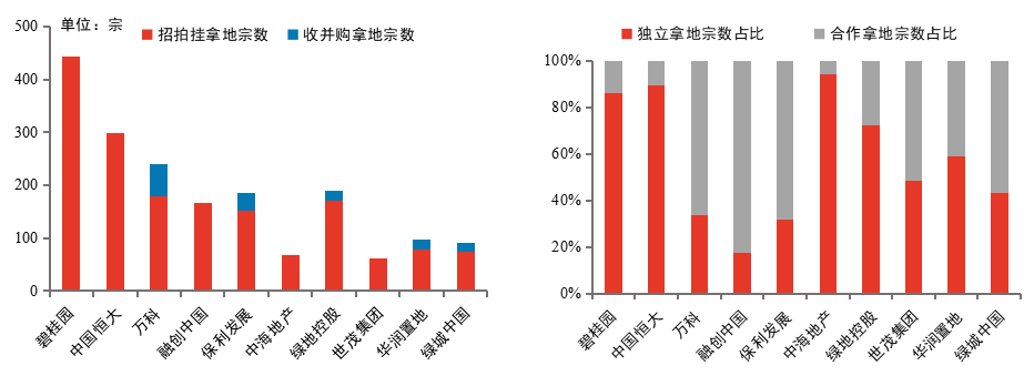 拿地的方式上呈现出明显的“报团取暖”特征,以招拍挂的合作拿地为主。